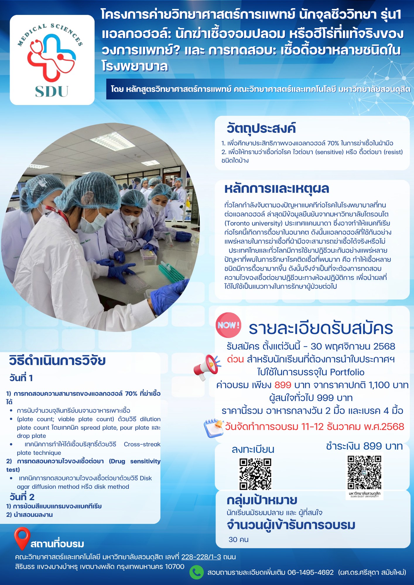 โครงการค่ายวิทยาศาสตร์การแพทย์ นักจุลชีววิทยา รุ่น1 แอลกอฮอล์: นักฆ่าเชื้อจอมปลอม หรือฮีโร่ที่แท้จริงของวงการแพทย์?