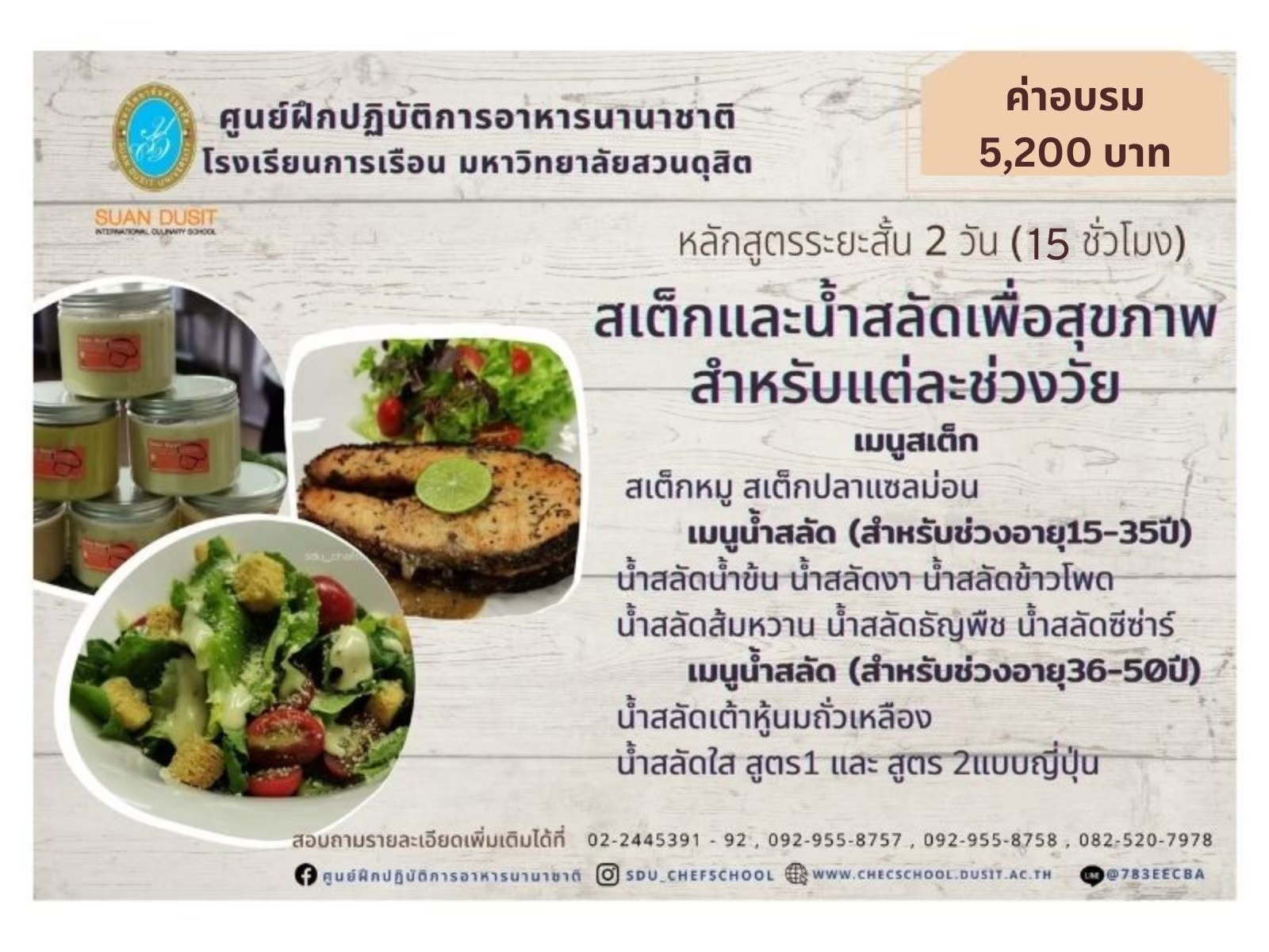 อบรมระยะสั้น “หลักสูตรสเต็กและน้ำสลัดเพื่อสุขภาพสำหรับช่วงวัย” (15ชม.)