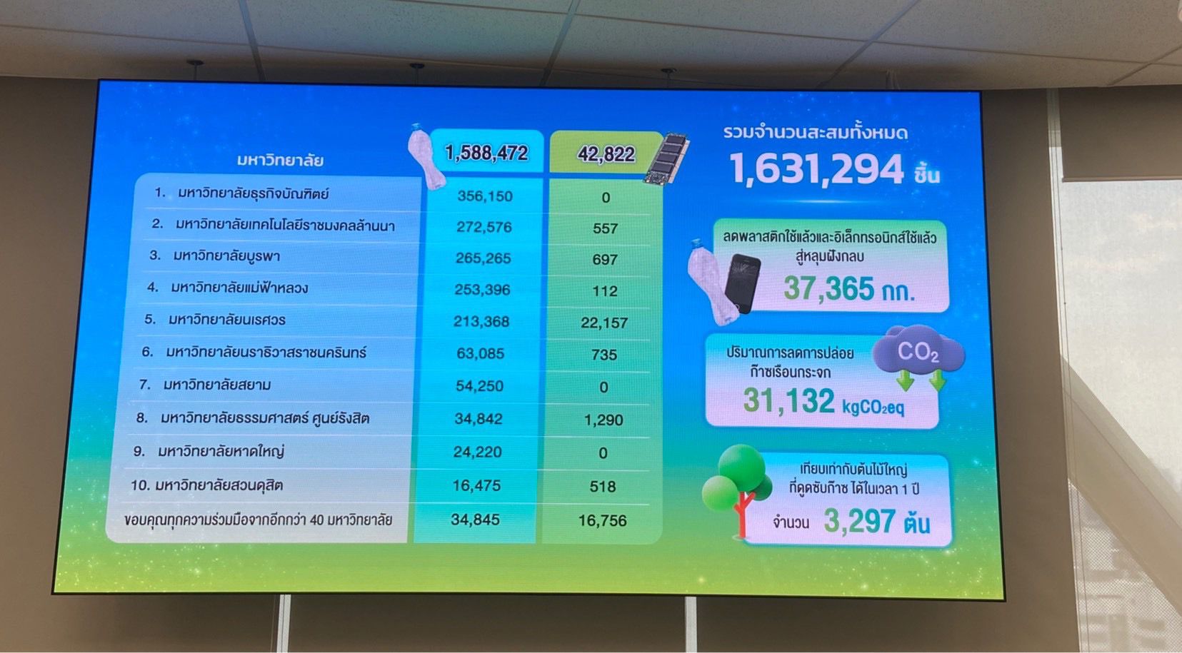 งานนี้มีวัตถุประสงค์เพื่อส่งเสริมการจัดการขยะอย่างถูกวิธีและปลูกจิตสำนึกด้านสิ่งแวดล้อมในสถาบันการศึกษาอย่างยั่งยืน จากสถาบันการศึกษาที่เข้าร่วมมากกว่า 40 แห่งทั่วประเทศ โดยมหาวิทยาลัยสวนดุสิตได้รับ อันดับที่ 10 จากผลการดำเนินงานตลอดโครงการ สามารถรวบรวมขยะรีไซเคิลได้อย่างมีประสิทธิภาพ ได้แก่ ขวดพลาสติกจำนวน 16,475 ชิ้น และขยะอิเล็กทรอนิกส์ (E-Waste) จำนวน 518 ชิ้น การดำเนินงานดังกล่าวช่วยลดการปล่อยก๊าซเรือนกระจกได้ประมาณ 339.71 กิโลกรัมคาร์บอนไดออกไซด์เทียบเท่า (kgCO₂eq) ซึ่งเทียบเท่ากับการดูดซับคาร์บอนของต้นไม้ประมาณ 86 ต้นต่อปี