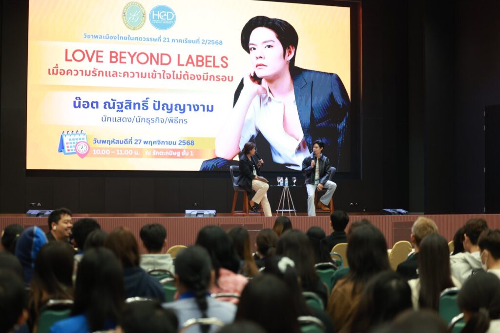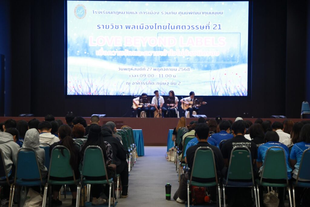 คณาจารย์และนักศึกษาโรงเรียนกฎหมายและการเมืองเข้าร่วมกิจกรรมโครงการจัดการเรียนการสอนเชิงประสบการณ์ รายวิชา พลเมืองไทยในศตวรรษที่ 21 วิทยากรโดย คุณน็อต ณัฐสิทธิ์ หัวข้วข้อ Love beyond labels : เมื่อความรักและความเข้าใจไม่ต้องมีกรอบ จัดโดยศูนย์พัฒนาทุนมนุษย์และโรงเรียนกฎหมายและการเมือง ร่วมกับสำนักส่งเสริมวิชาการและงานทะเบียน วันพฤหัสบดีที่ 27 พฤศจิกายน 2568 ณ หอประชุมรักตะกนิษฐ ชั้น 2