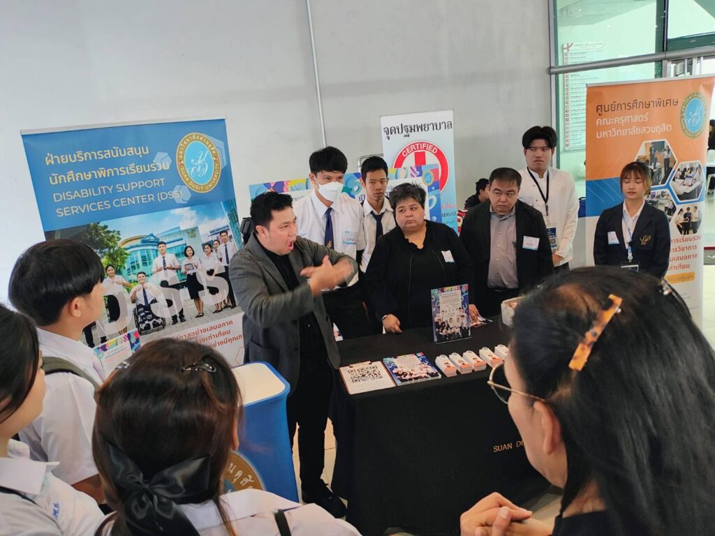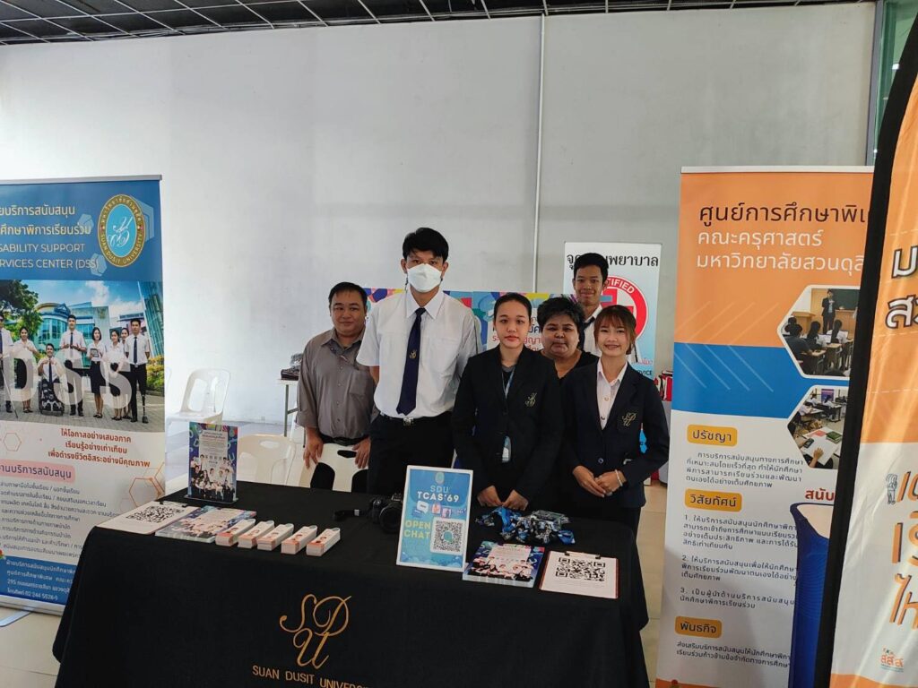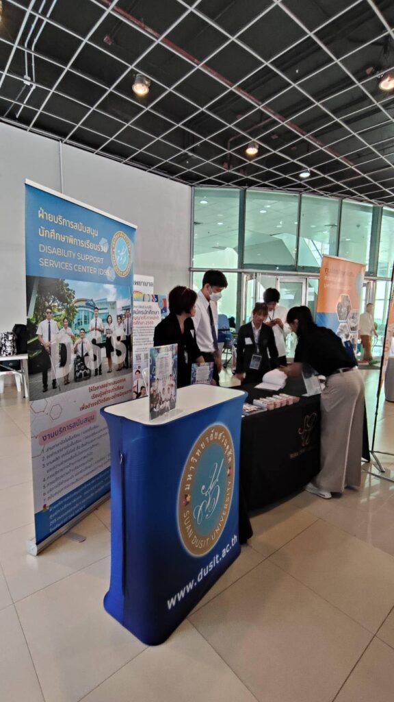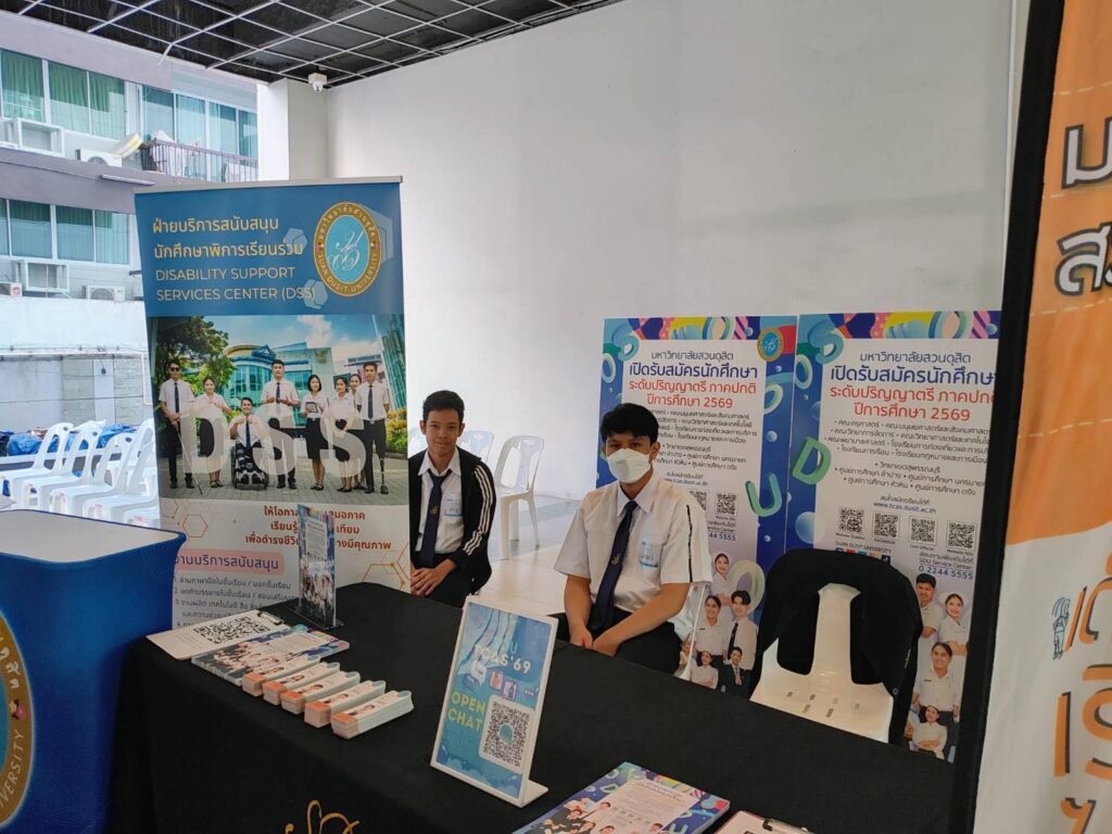 เมื่อวันที่ 26 พฤศจิกายน 2568 กองประชาสัมพันธ์ ร่วมกับ ฝ่ายสนับสนุนนักศึกษาพิการเรียนร่วม (DSS) ศูนย์การศึกษาพิเศษ คณะครุศาสตร์ มหาวิทยาลัยสวนดุสิต (มสด.) เข้าร่วมกิจกรรม “เยาวชนพิการ กทม. เรียนดี – มีงานทำ” ณ ชั้น 1 อาคารนวัตกรรม ศาสตราจารย์ ดร.สาโรช บัวศรี มหาวิทยาลัยศรีนครินทรวิโรฒ