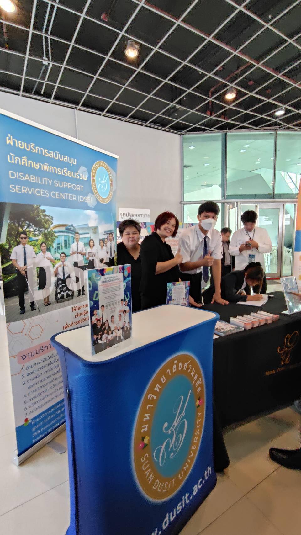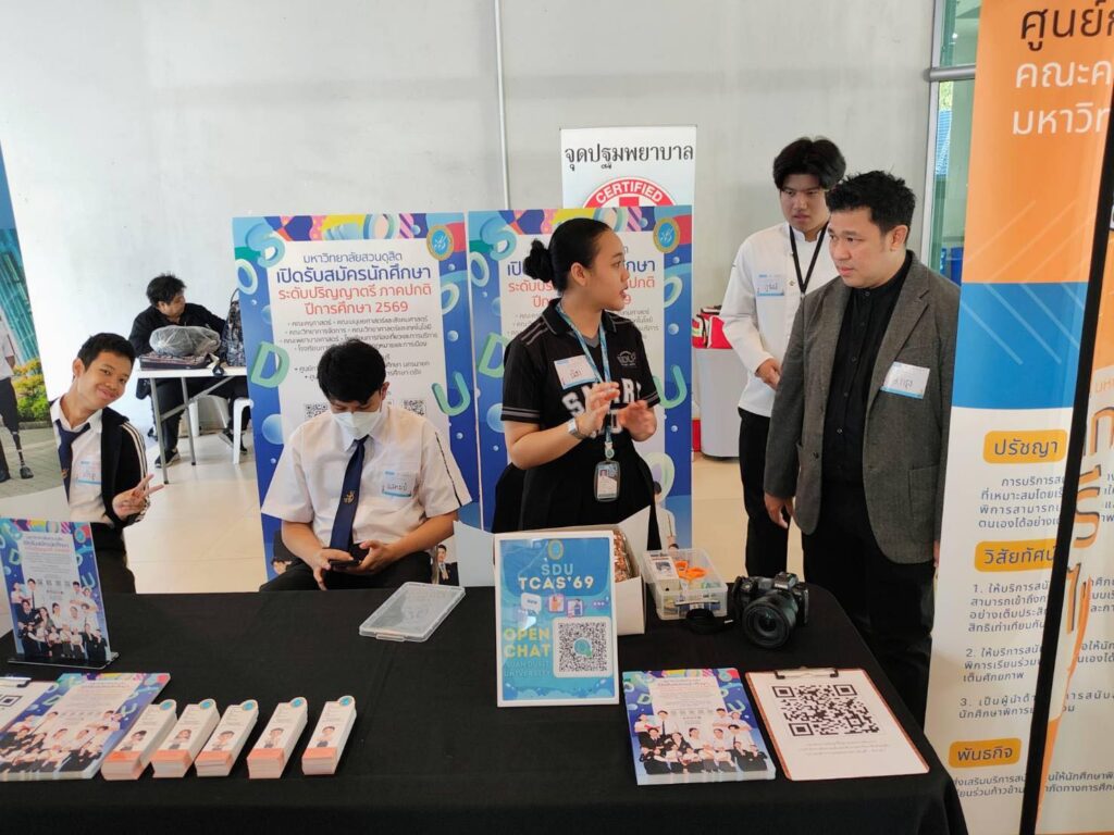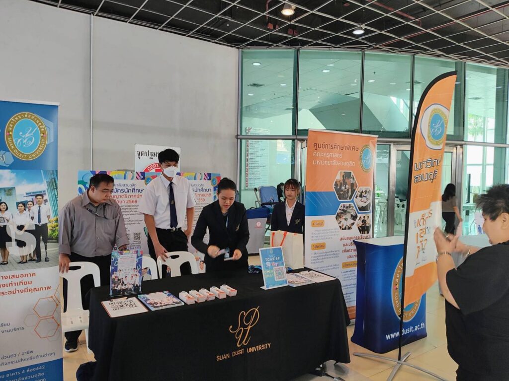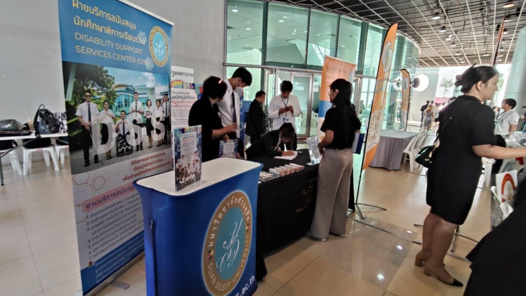 เมื่อวันที่ 26 พฤศจิกายน 2568 กองประชาสัมพันธ์ ร่วมกับ ฝ่ายสนับสนุนนักศึกษาพิการเรียนร่วม (DSS) ศูนย์การศึกษาพิเศษ คณะครุศาสตร์ มหาวิทยาลัยสวนดุสิต (มสด.) เข้าร่วมกิจกรรม “เยาวชนพิการ กทม. เรียนดี – มีงานทำ” ณ ชั้น 1 อาคารนวัตกรรม ศาสตราจารย์ ดร.สาโรช บัวศรี มหาวิทยาลัยศรีนครินทรวิโรฒ