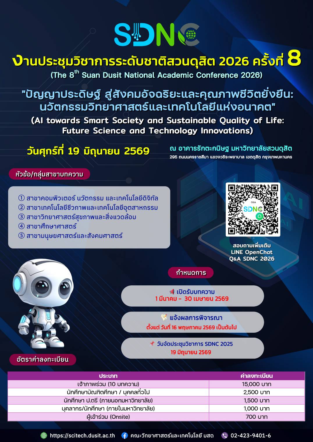 เว็บไซต์: https://scitech.dusit.ac.th และ https://sdnc.dusit.ac.th