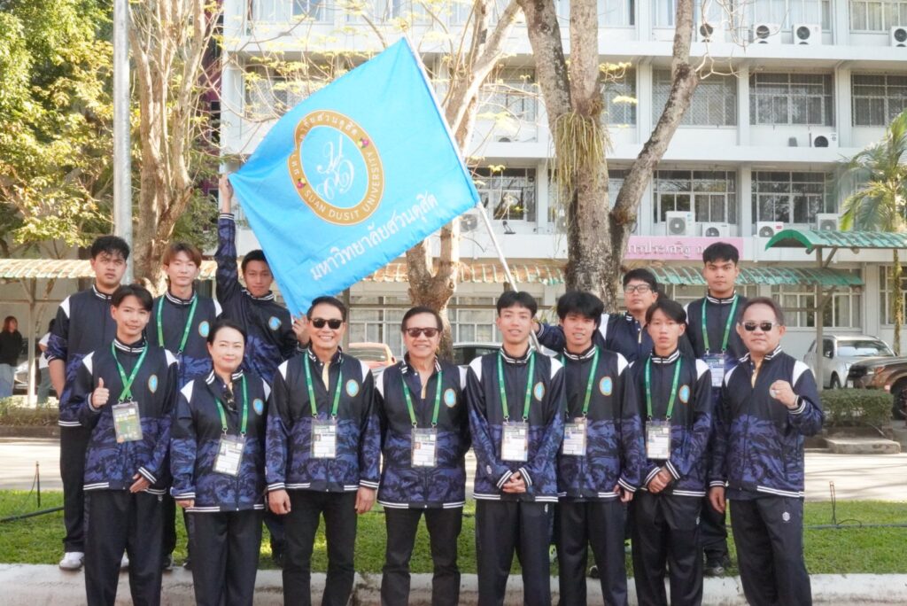 วันศุกร์ที่ 9 มกราคม 2569 ณ ศูนย์กีฬาเฉลิมพระเกียรติ มหาวิทยาลัยแม่โจ้ จังหวัดเชียงใหม่ ผู้ช่วยศาสตราจารย์ ดร.พิทักษ์ จันทร์เจริญ อธิการบดี หัวหน้าคณะนักกีฬา รองศาสตราจารย์ พัชรี สวนแก้ว รองอธิการบดีฝ่ายกิจการนักศึกษา รองหัวหน้าคณะกีฬา ว่าที่ร้อยตรี ดร.วราธร อภิรัตน์ ผู้อำนวยการสำนักงานมหาวิทยาลัย รองหัวหน้าคณะนักกีฬา นางสาวสุวิมล แมตสอง ผู้อำนวยการกองบริหารงานบุคคล ผู้จัดการทีมแบดมินตัน ผู้ช่วยศาสตราจารย์ ดร.ธนากร ปักษา ผู้อำนวยการกองพัฒนานักศึกษา ร่วมปลูกต้นกล้าอินทนิน เพื่อเป็นส่วนหนึ่งในการลดก๊าซเรือนกระจก และ นำคณะนักกีฬามหาวิทยาลัยสวนดุสิตเข้าร่วมพิธีเปิดการแข่งขันกีฬามหาวิทยาลัยแห่งประเทศไทย ครั้งที่ 51 “อินทนิลเกมส์ 2026”