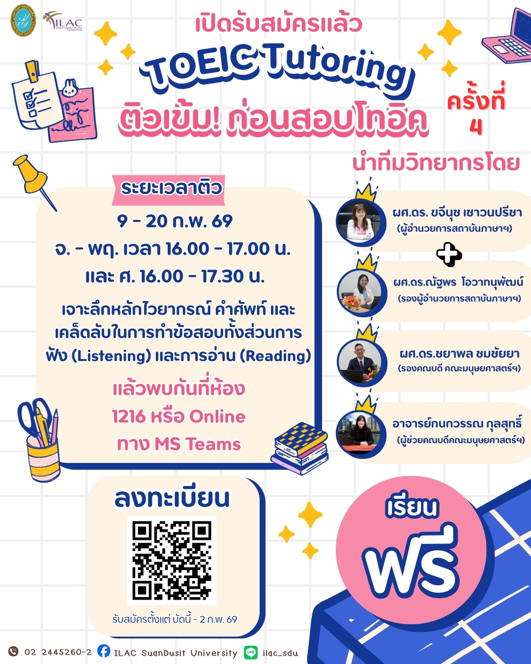 หากมีข้อสงสัย สามารถติดต่อได้ที่ FB Inbox หรือ Line: ilac_sdu