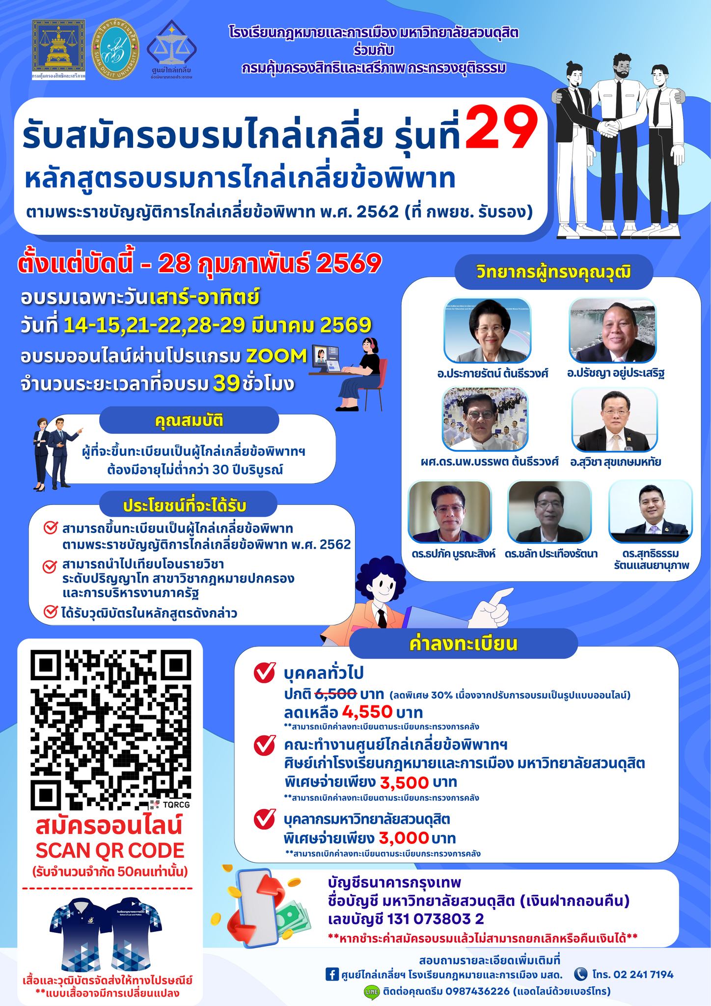คณะทำงานศูนย์ไกล่เกลี่ยข้อพิพาทฯ / ศิษย์เก่าโรงเรียนกฎหมายและการเมือง มหาวิทยาลัยสวนดุสิต