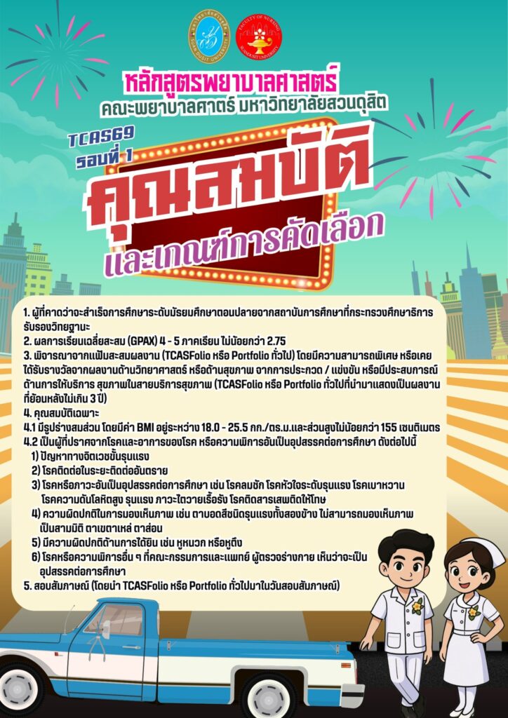 ประกาศรับสมัครนักศึกษาของ คณะพยาบาลศาสตร์ มหาวิทยาลัยสวนดุสิต รอบ Portfolio (TCAS69)อ่านต่อ ประกาศรับสมัครนักศึกษาของ คณะพยาบาลศาสตร์ มหาวิทยาลัยสวนดุสิต รอบ Portfolio (TCAS69)