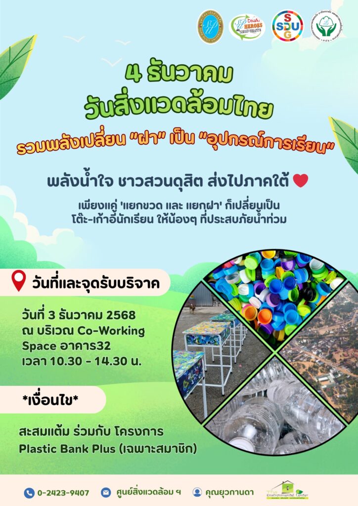 เชิญร่วมกิจกรรม “รวมพลังเปลี่ยน ‘ฝา’ เป็น ‘อุปกรณ์การเรียน’” เนื่องในวันสิ่งแวดล้อมไทย”อ่านต่อ เชิญร่วมกิจกรรม “รวมพลังเปลี่ยน ‘ฝา’ เป็น ‘อุปกรณ์การเรียน’” เนื่องในวันสิ่งแวดล้อมไทย”