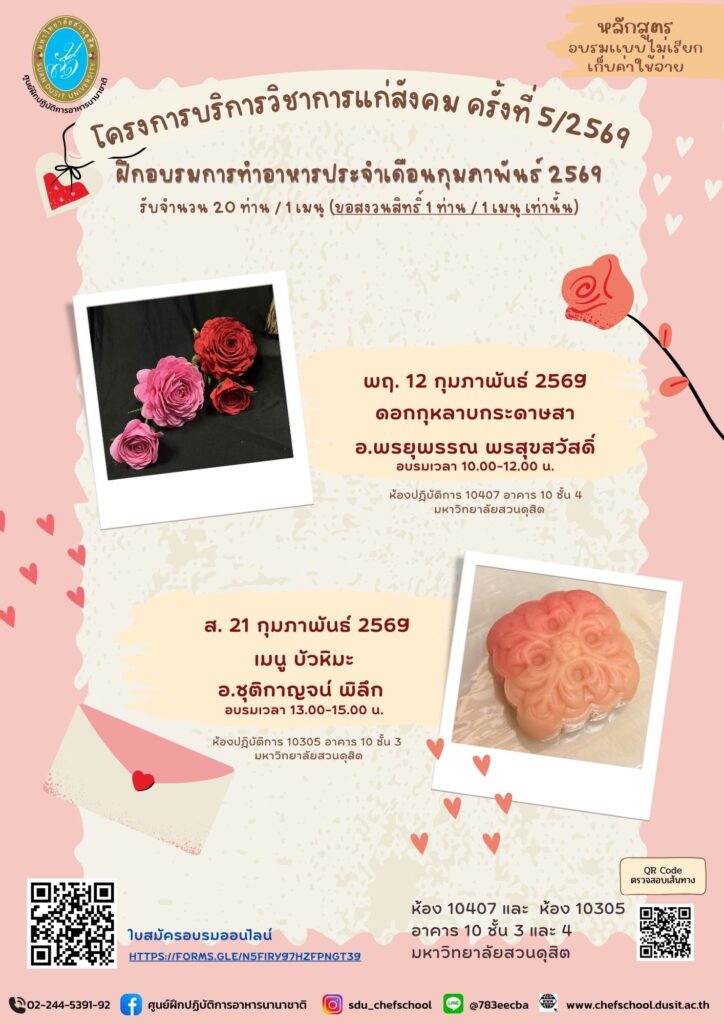 📣📣โครงการบริการวิชาการแก่สังคม ครั้งที่ 5/2569 จัดอบรมการทำอาหารเเละเบเกอรี่โดยไม่มีค่าใช้จ่ายอ่านต่อ 📣📣โครงการบริการวิชาการแก่สังคม ครั้งที่ 5/2569 จัดอบรมการทำอาหารเเละเบเกอรี่โดยไม่มีค่าใช้จ่าย