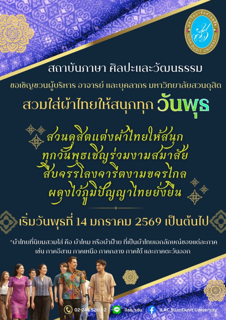 “ สวนดุสิตแต่งผ้าไทยให้สนุก ทุกวันพุธเชิญร่วมงามสมาสัย สืบจรรโลงจารีตงามขจรไกล ผดุงไว้ภูมิปัญญาไทยยั่งยืน”อ่านต่อ “ สวนดุสิตแต่งผ้าไทยให้สนุก ทุกวันพุธเชิญร่วมงามสมาสัย สืบจรรโลงจารีตงามขจรไกล ผดุงไว้ภูมิปัญญาไทยยั่งยืน”