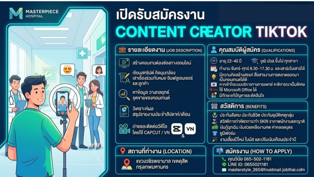 รับสมัคร: Content Creator Tiktok (ทำงานเสาร์เว้นเสาร์)Posted on March 11, 2026อ่านต่อ รับสมัคร: Content Creator Tiktok (ทำงานเสาร์เว้นเสาร์)