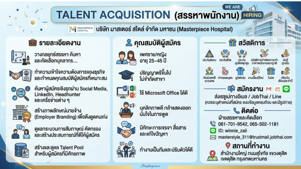 รับสมัคร: Talent Acquisition (สรรหาพนักงาน)Posted on March 11, 2026อ่านต่อ รับสมัคร: Talent Acquisition (สรรหาพนักงาน)
