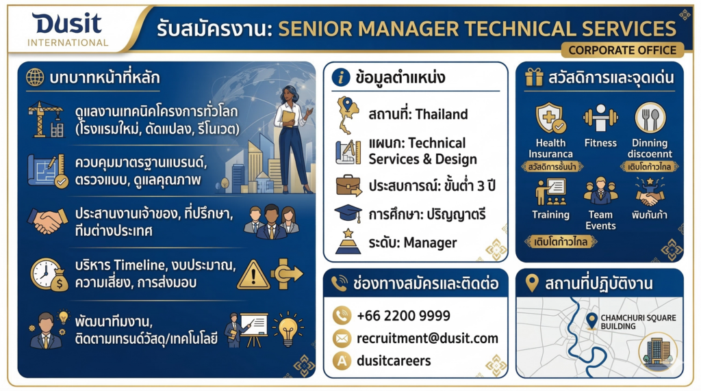 รับสมัคร: Senior Manager Technical ServicesPosted on March 11, 2026อ่านต่อ รับสมัคร: Senior Manager Technical Services