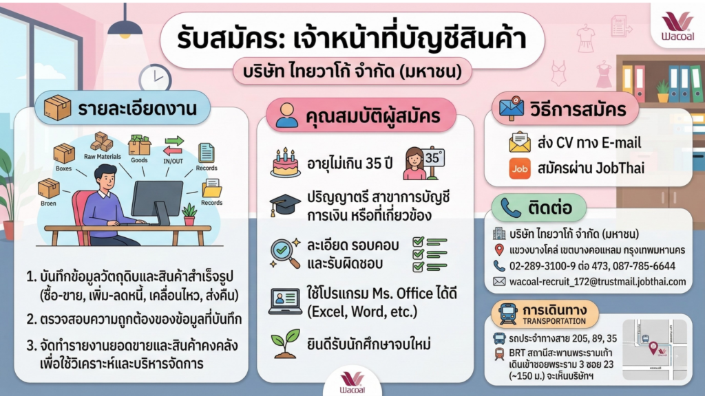 รับสมัคร: เจ้าหน้าที่บัญชีต้นทุนและวัตถุดิบPosted on March 10, 2026อ่านต่อ รับสมัคร: เจ้าหน้าที่บัญชีต้นทุนและวัตถุดิบ