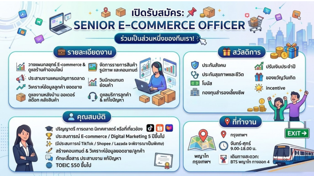รับสมัคร: Senior E-commerce OfficerPosted on March 11, 2026อ่านต่อ รับสมัคร: Senior E-commerce Officer